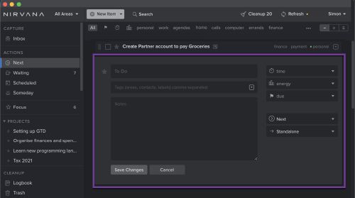 Another big one was the separation between adding a task to an Inbox versus reviewing each task and asking the above next action question. This way, during capturing, I could focus on saving the tasks as quickly as possible, and in the reviewing face, I’d use a different part of my brain to make more profound thoughts on how to accomplish it or directly do it if lesser than 2 minutes. This differentiation many of us ignore, and we add tasks such as “do tax” and “change tires”. Instead, we could add actionable tasks such as “call accountant for a date”, “collect payslip”, or “call garage for appointment”.
