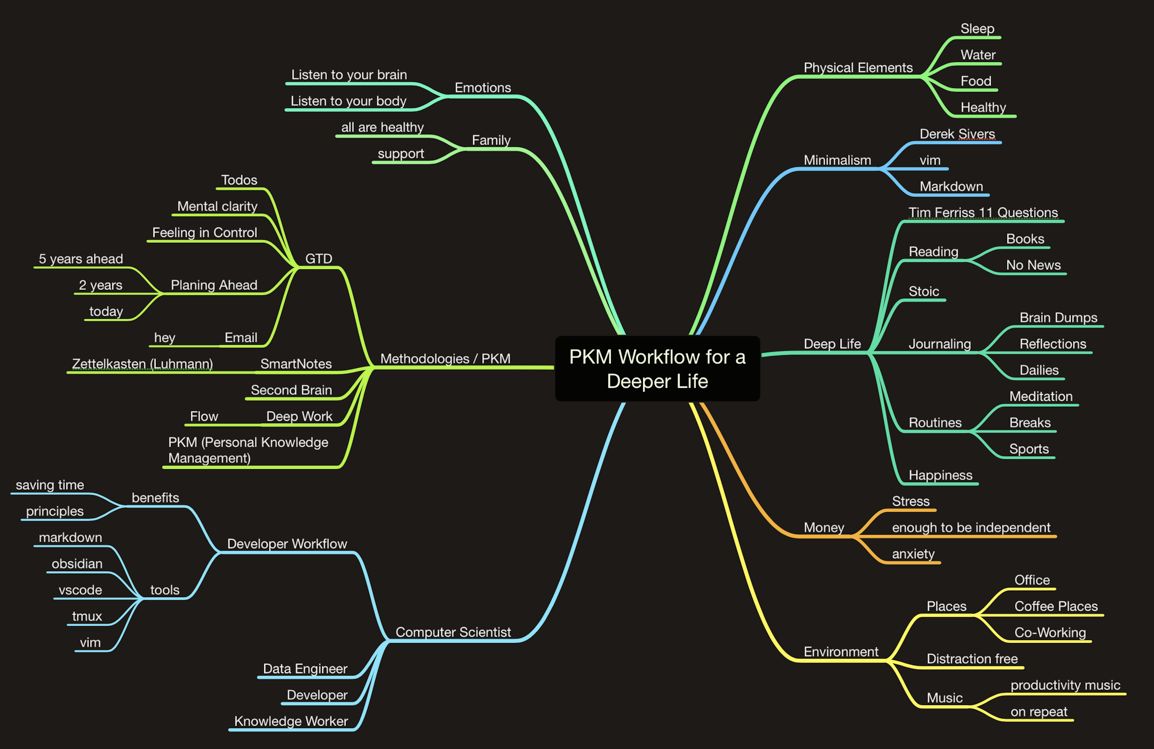 I thought long if I should include this section in this article. But to my journey, all of the following chapters came way before I even knew what a second brain was or sustainably linking my thoughts. Besides a sound PKM System, a place to store all your knowledge and handle your to-dos, much more is needed for a fulfilled life. Without the content of the following chapters, I wouldn’t be here talking about productivity and other tools to improve life. Most of them happen inside my PKM system anyhow. Therefore I’m going through different parts of a deep life, which helped me keep grounded and to have a better meaningful life, similar to what the PKM system does to me.